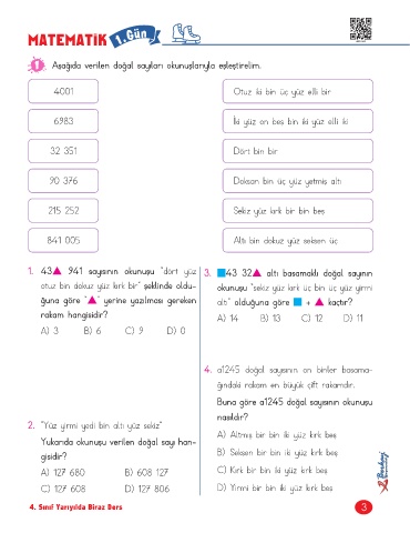 1. 43 941 sayısının okunuşu “dört yüz 3. ∂43 32 altı basamaklı doğal sayının