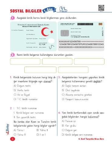 1. Kimlik belgemizde bulunan hangi bilgi di- 3. Aşağıdakilerden hangisini yaparken kimlik