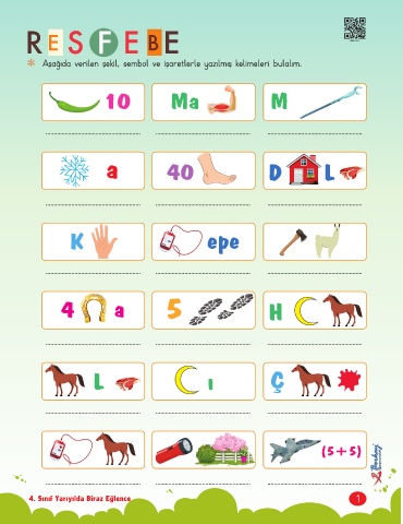 Aşağıda verilen şekil, sembol ve işaretlerle yazılmış kelimeleri bulalım.