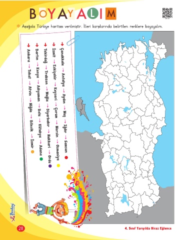 Aşağıda Türkiye haritası verilmiştir. İlleri karşılarında belirtilen renklere boyayalım. 4BE-028