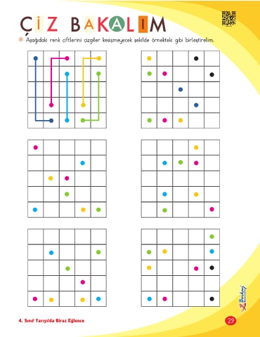 Ç Z B K L I M 4BE-029 A İ A Aşağıdaki renk çiftlerini çizgiler kesişmeyecek şekilde örnekteki gibi birleştirelim. 4. Sınıf Yarıyılda Biraz Eğlence 29
