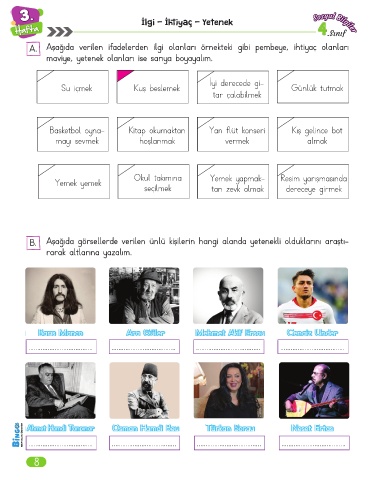 B. Aşağıda görsellerde verilen ünlü kişilerin hangi alanda yetenekli olduklarını araştı-