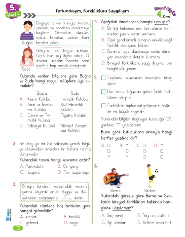 Hafta Farkındayım, Farklılıklara Saygılıyım Sosyal Bilgiler