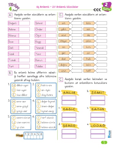A. Aşağıda verilen sözcüklerin eş anlam- C. Aşağıda verilen sözcüklerin zıt anlam-