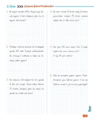 Page 115 - BİNGO 4.SINIF MATEMATİK 1.KİTAP
