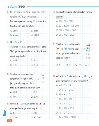 Page 118 - BİNGO 4.SINIF MATEMATİK 1.KİTAP
