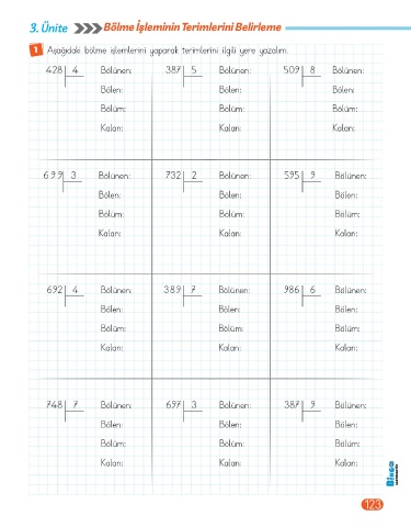 Page 125 - BİNGO 4.SINIF MATEMATİK 1.KİTAP