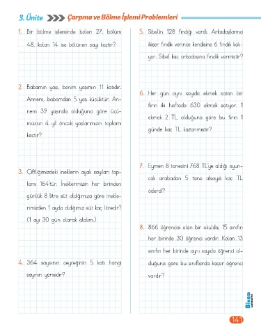 Page 143 - BİNGO 4.SINIF MATEMATİK 1.KİTAP