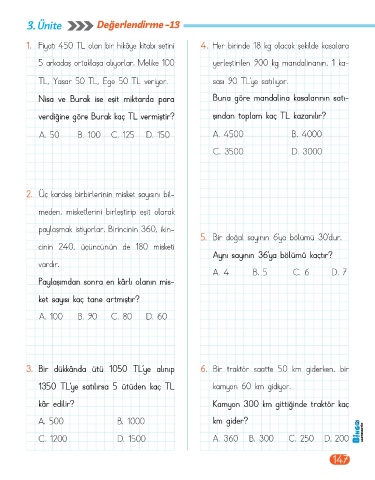 Page 149 - BİNGO 4.SINIF MATEMATİK 1.KİTAP