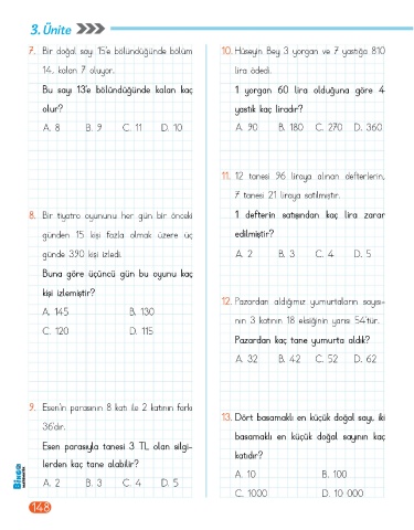 Page 150 - BİNGO 4.SINIF MATEMATİK 1.KİTAP