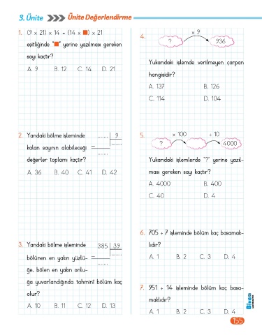 Page 157 - BİNGO 4.SINIF MATEMATİK 1.KİTAP