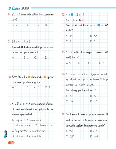 Page 158 - BİNGO 4.SINIF MATEMATİK 1.KİTAP