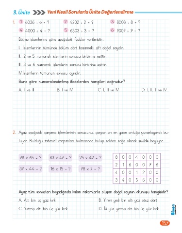 Page 159 - BİNGO 4.SINIF MATEMATİK 1.KİTAP