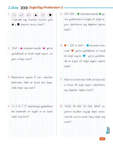 Page 47 - BİNGO 4.SINIF MATEMATİK 1.KİTAP