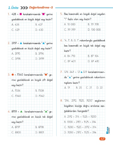 Page 49 - BİNGO 4.SINIF MATEMATİK 1.KİTAP