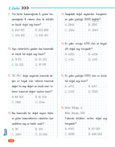Page 52 - BİNGO 4.SINIF MATEMATİK 1.KİTAP