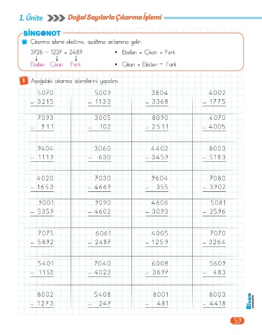 Page 61 - BİNGO 4.SINIF MATEMATİK 1.KİTAP