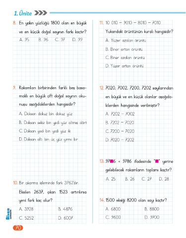 Page 72 - BİNGO 4.SINIF MATEMATİK 1.KİTAP
