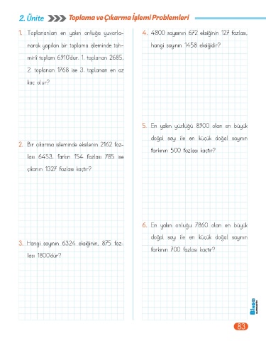 Page 85 - BİNGO 4.SINIF MATEMATİK 1.KİTAP