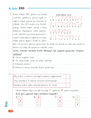 2. Braille alfabesi 1821 yılında Louis Braille Braille Alfabesi, Türkçe