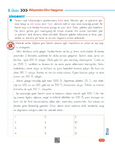 5. Ünite Bütçemize Göre Yaşıyoruz