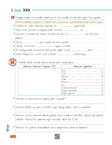 3 Aşağıda verilen soruları aile bütçemize göre cevaplayalım.