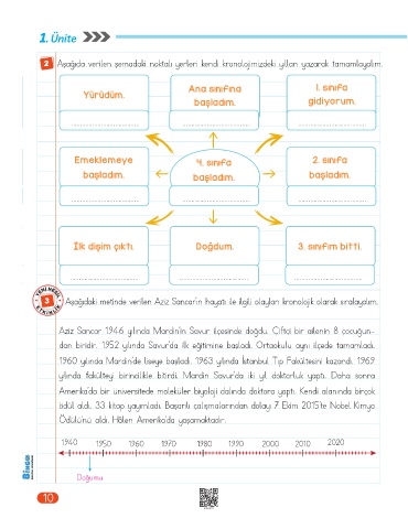 3 Aşağıdaki metinde verilen Aziz Sancar’ın hayatı ile ilgili olayları kronolojik olarak sıralayalım.