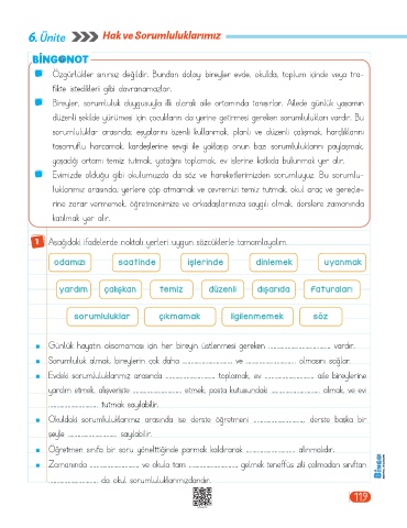 1 Aşağıdaki ifadelerde noktalı yerleri uygun sözcüklerle tamamlayalım.