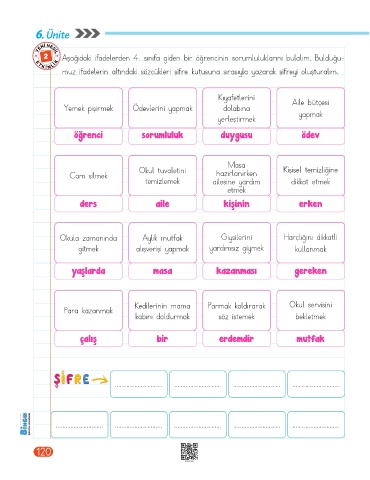 2 Aşağıdaki ifadelerden 4. sınıfa giden bir öğrencinin sorumluluklarını bulalım. Bulduğu-