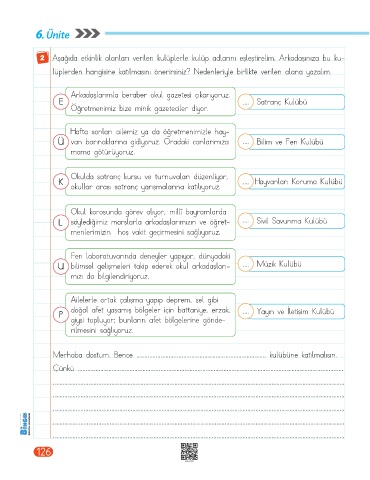 2 Aşağıda etkinlik alanları verilen kulüplerle kulüp adlarını eşleştirelim. Arkadaşınıza bu ku-