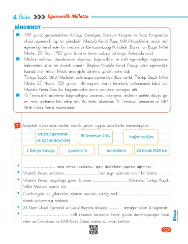 6. Ünite E ge me nlik Millet t e