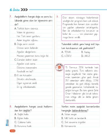 7. Aşağıdakilerin hangisi doğa ve çevre ku- 9. Dün akşam televizyon haberlerinde