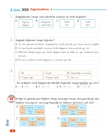 1. Aşağıdakilerden hangisi resmî işlemlerde kullanılan bir kimlik belgesidir?