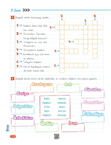 4 Aşağıda karışık olarak verilen başkentleri ait oldukları ülkelerin kutucuğuna yazalım.