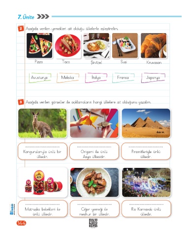 2 Aşağıda verilen yemekleri ait olduğu ülkelerle eşleştirelim.