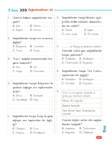 C. Suriye D. Ermenistan 8. Aşağıdakilerden hangisi Türk Cumhu-