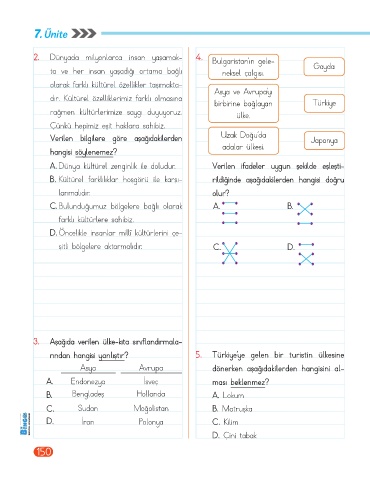 A. Dünya kültürel zenginlik ile doludur. Verilen ifadeler uygun şekilde eşleşti-