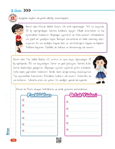 Murat ile Filiz’in bireysel farklılıklarını ve ortak yönlerini sınıflandıralım.