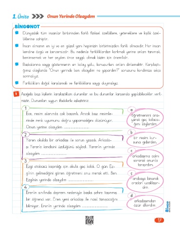 1 Aşağıda bazı kişilerin karşılaştıkları durumlar ve bu durumlar karşısında yapılabilecekler veril-
