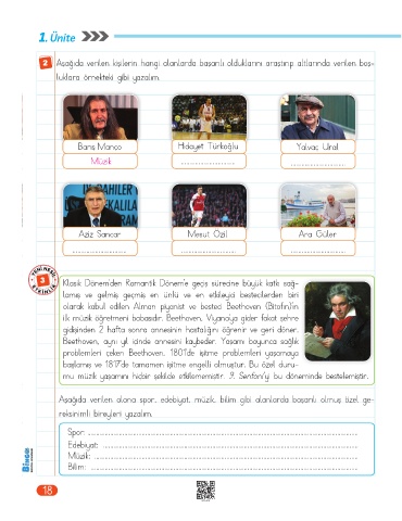 2 Aşağıda verilen kişilerin hangi alanlarda başarılı olduklarını araştırıp altlarında verilen boş-