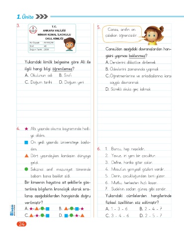 C. Doğum tarihi D. Doğum yeri saygılı davranmak