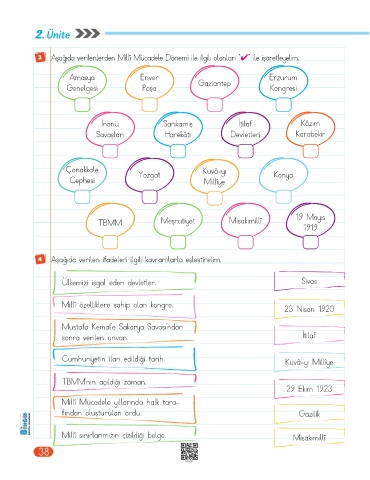 3 Aşağıda verilenlerden Millî Mücadele Dönemi ile ilgili olanları “✔” ile işaretleyelim.