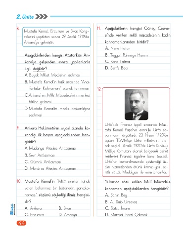 10. Mustafa Kemal’in “Millî sınırlar içinde Yukarıda sözü edilen Millî Mücadele