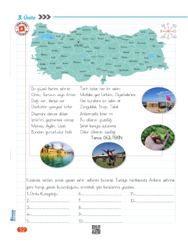 Yukarıda verilen şiirde geçen şehir adlarını bularak Türkiye haritasında Ankara şehrine