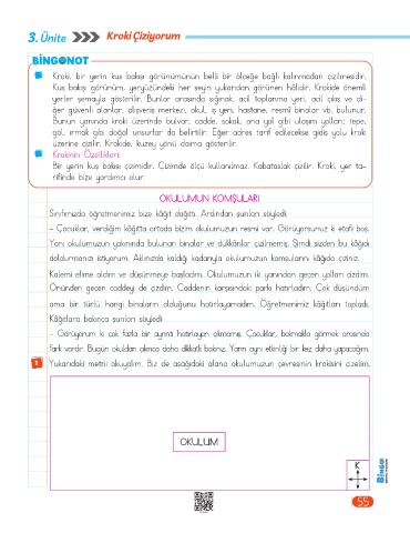 1 Yukarıdaki metni okuyalım. Biz de aşağıdaki alana okulumuzun çevresinin krokisini çizelim.