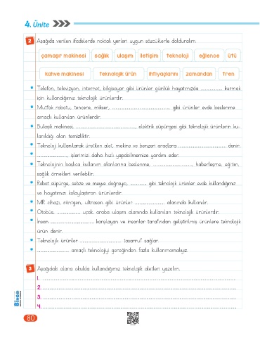 2 Aşağıda verilen ifadelerde noktalı yerleri uygun sözcüklerle dolduralım.