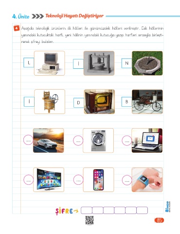 4 Aşağıda teknolojik ürünlerin ilk hâlleri ile günümüzdeki hâlleri verilmiştir. Eski hâllerinin