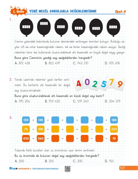 1. Ünite YENİ NESİL SORULARLA DEĞERLENDİRME Test-9