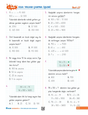 3. Ünite KISA YOLDAN ÇARPMA İŞLEMİ Test-17
