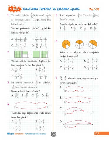 4. Ünite KESİRLERLE TOPLAMA VE ÇIKARMA İŞLEMİ Test-30